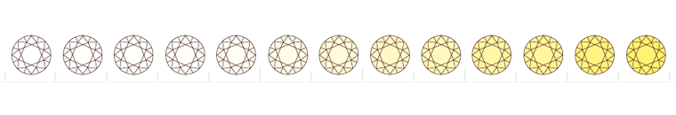 D – výjimečně bílý + | E – výjimečně bílý | F – vzácně bílý | G – bílý + | H – bílý | I, J – bílý, slabě zbarvený | K, L – bílý zbarvený | M, N – velmi světle žlutý | O, P, G, R – světle žlutý | S, Z – žlutý